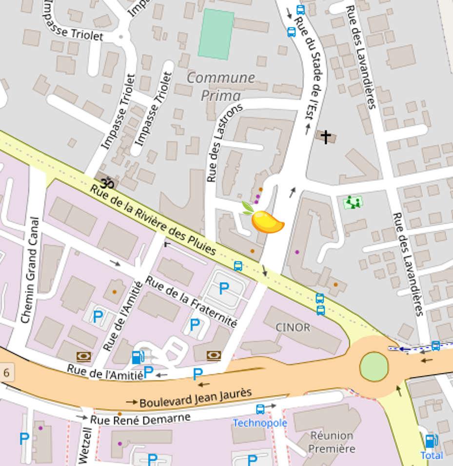 Mangue & Co est située au 46, rue du Stade de l’Est dans le quartier de Commune Primat à Saint-Denis.